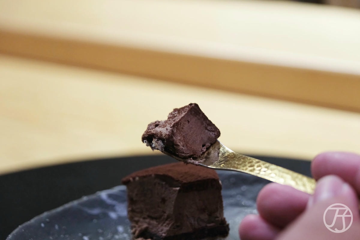 最後一道上桌的是主廚特製金沙巧克力,甜度剛好香氣足夠,我跟朋友都相當喜歡。