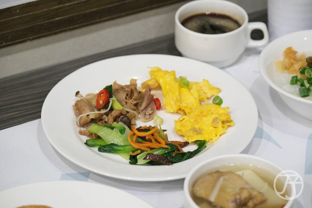 餐點我覺得還滿足夠的,雖然不是多到令人無法選擇,但以台南商務飯店來說,已經是相當全面的早餐服務,大家熟悉的時蔬熱菜、雞湯、廣東粥、水果等,滿滿一桌讓你擁有滿足又幸福的早餐。